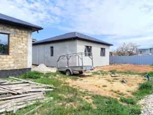 Новый дом в садоводстве "Медик-88" расположен на участке идеальной прямоугольной формы 16 метров с фасада на 25 метров глубиной площадью 4 сотки. Здание построено из ракушечника в камень на надежном ленточном фундаменте. Кровля четырехскатная, утеплена минеральной ватой Rockwool толщиной 150 мм и покрыта мягкой черепицей "Технониколь", что гарантирует долговечность и энергоэффективность. Высота потолков составляет 3,2 метра, создавая ощущение простора. Планировка включает три изолированные спальни, функциональную гардеробную, бойлерную и совмещенный санузел. Просторная кухня-гостиная оборудована выходом на крытую террасу, идеальную для отдыха в любую погоду.