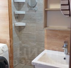 1 этаж: комната + кухня - гостиная с тёплым полом, туалетная комната, душевая комната, лестница выполнена из дерева.
