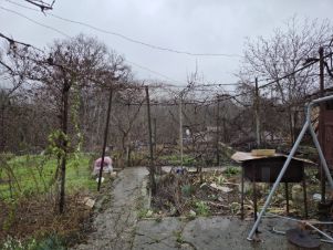 Хорошая перспектива выкупить ещё 1/3 доли и стать владельцем половины дома и земли,в этом случае участок и постройки делятся на два отдельных объекта недвижимости,каждый с выходом на свою улицу.Участок с уклоном,разбит на террасы. На участке много винограда,плодовые деревья, хурма. Место уютное с видом на горы и скалы,подъезд асфальтирован. Коммуникации все городские.