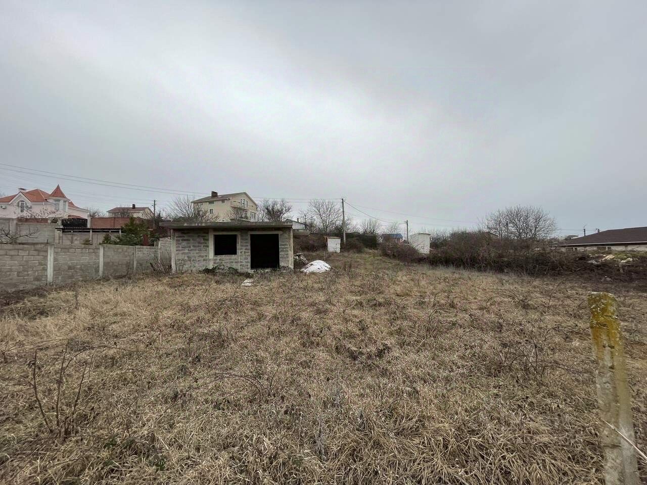 На участке стоит недостроенный дом( по проекту 200 кв. М.). На данный момент построен монолитный фундамент, монолитный цокольный этаж, залита монолитная плита перекрытия, стены цокольного этажа из пенобенонных блоков, выведены армокаркасы под колонны первого этажа, залита монолитная лестница, планировалось построить еще один этаж и мансарду.Высота цокольного этажа 2,8.