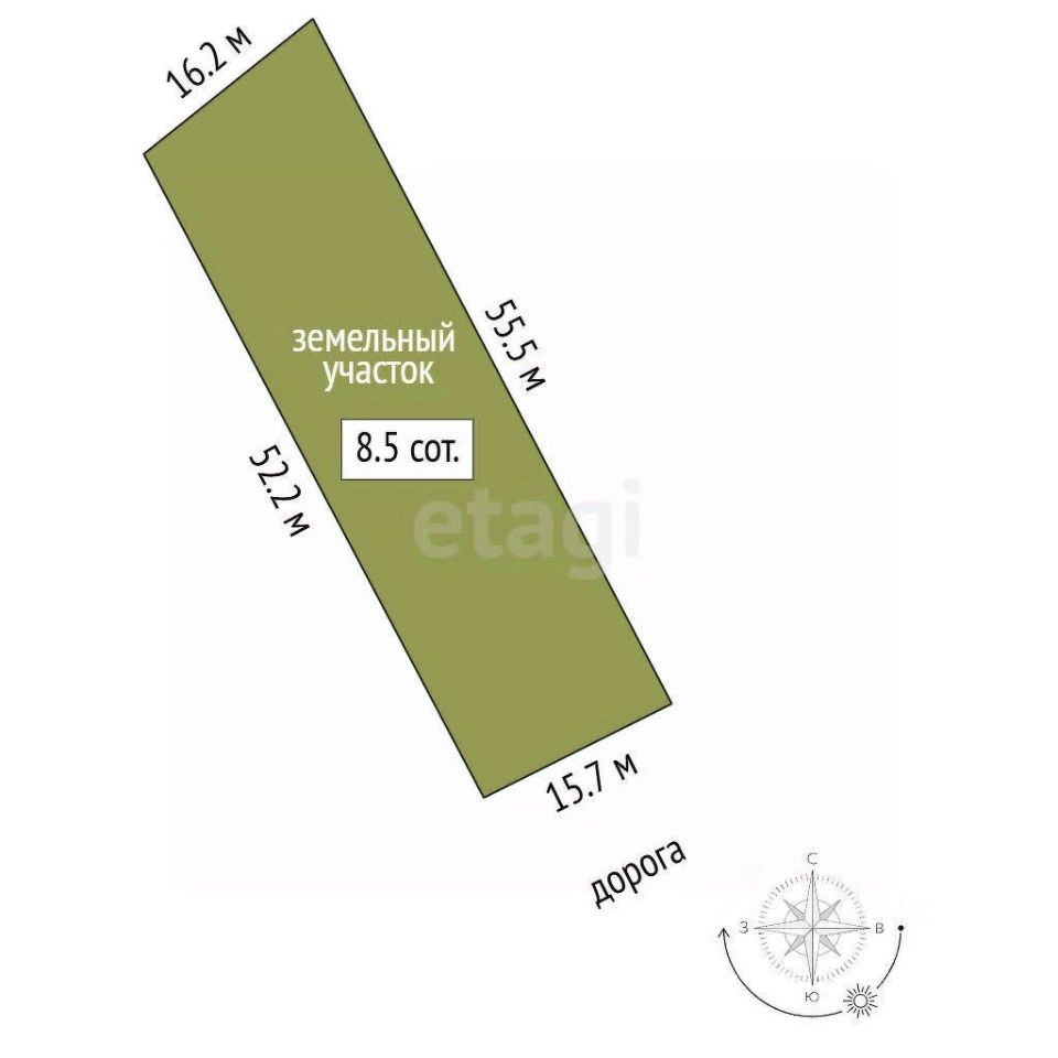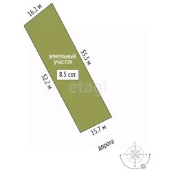 Участок имеет правильную прямоугольную форму и при необходимости может быть разделен на два самостоятельных надела.