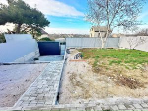 Участок ровный, правильной формы 4 сотки. Подъезд к участку - грунтовая дорога. Участок огорожен забором из профнастила, установлены ворота и калитка, площадка под автомобиль и дорожки выложены тротуарной плиткой.