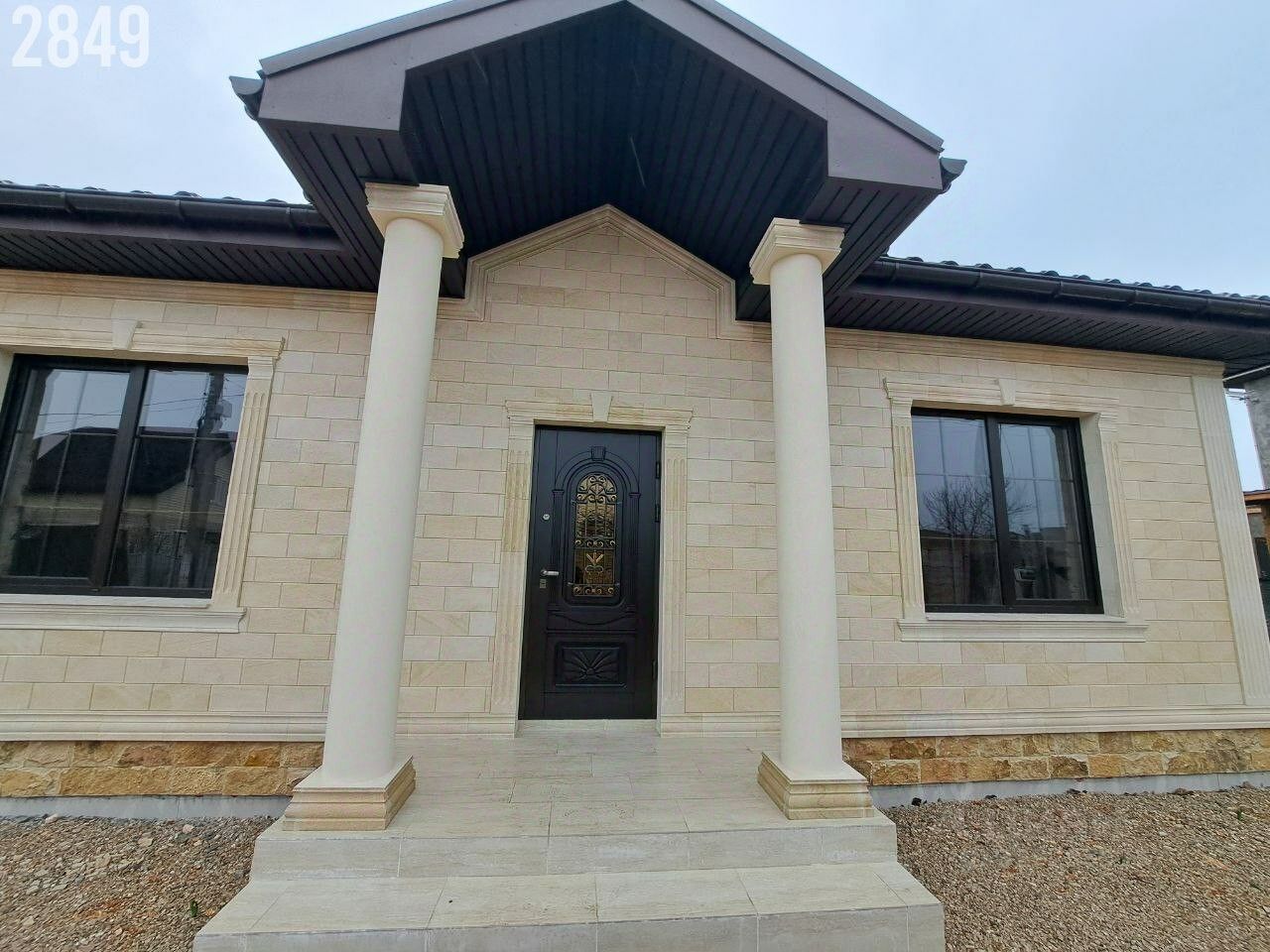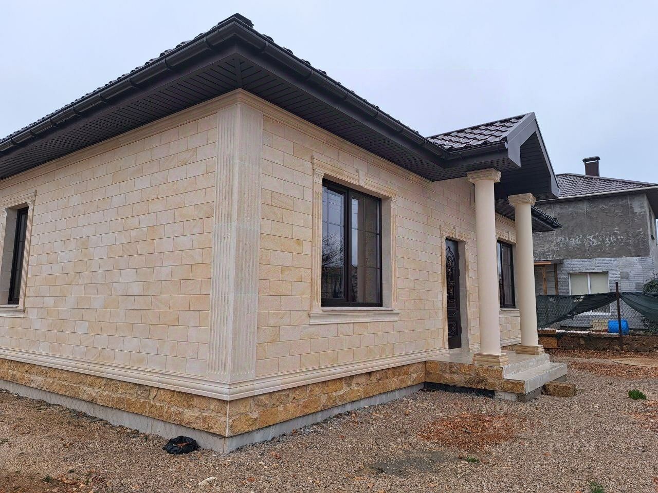 Дом построен из ракушки, перегородки комнат из кирпича, дом утеплен минватой , отделка - дагестанский камень