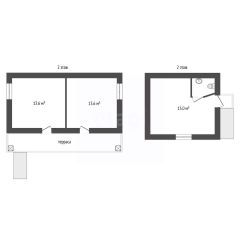 Дом 2 (летняя кухня) 30 кв.м. Представляет собой компактное жилое пространство с отдельной комнатой, санузлом, кухней и душевой на первом этаже.