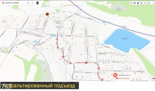 Подъезд: асфальтированный + грунтовой участок дороги. Участок ровный, прямоугольной формы, без уклона.