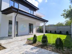 — Благоустройство: Полностью огорожен (откатные ворота, стильный забор), ухоженный газон с автополивом, хвойные туи.