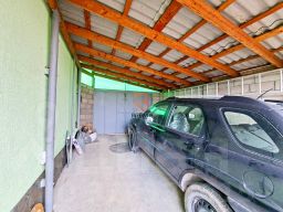 Заезд на участок с двух сторон, во дворе место для стоянки трех автомобилей, одно из которых с навесом. При желании участок можно размежевать на два и построить еще один дом.