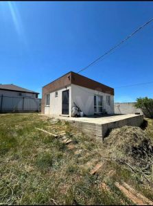 Дом состоит из двух светлых спален по 11 м², просторной кухни-гостиной площадью 17 м², санузла и уютного коридора. На территории перед домом имеется бетонированная площадка, идеально подходящая под террасу, размером 3 м на 9 м, где вы сможете расслабиться на свежем воздухе. Участок окружен забором из металлопрофиля с калиткой и откатными воротами, что обеспечивает безопасность и уединение.