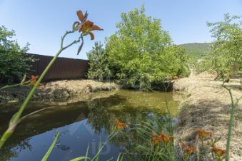 Участок радует большим количеством плодовых насаждений, винограда, а также имеет значительную свободную площадь под организацию огорода и прямой выход к пруду.