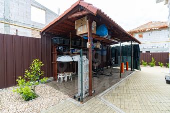 Навес для парковки двух машин. Облагороженный двор в европейском стиле: бетонное покрытие и плитка. Дизайнерское оформление и установленная система охраны с видеонаблюдением и датчиками движения. Хорошо оборудованная мастерская.
