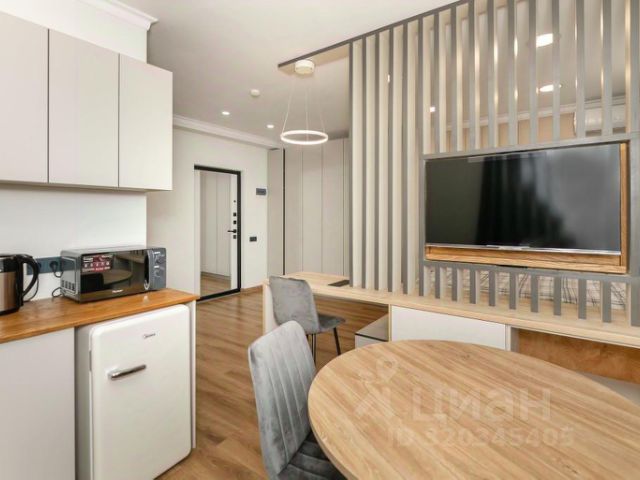 - В кухонной зоне встроенный холодильник, кондиционер, телевизор, варочная панель, вытяжка, чайник, фильтр для питьевой воды, микроволновая печь, стол, кресла, вся необходимая посуда, столовые приборы;