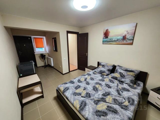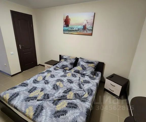 Номер с 1 большой кроватью,выполненный в светлых тонах (бежевый и изумрудный), удобства в номере.Есть зона мини-кухни. Холодильник в каждом номере, набор посуды. Микроволновая печь, гладильная доска и утюг для общего пользования находятся в холле.