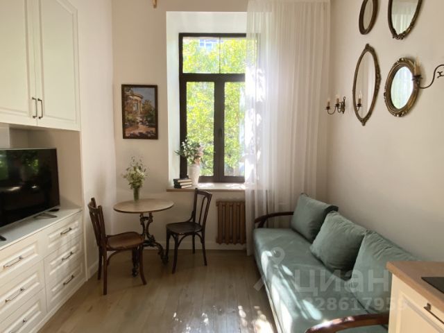 Уютная и красивая квартира-студия в историческом дореволюционном доме со свежим дизайнерским ремонтом и сохранившимися аутентичными деталями интерьера.