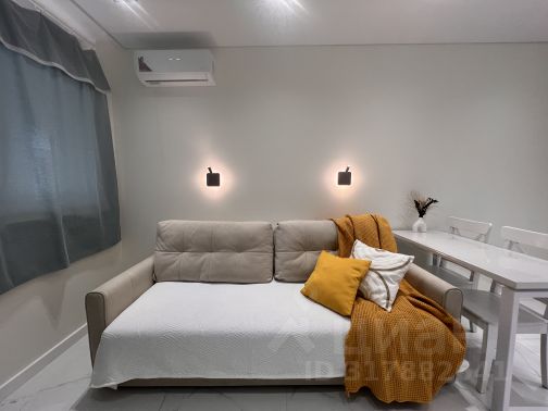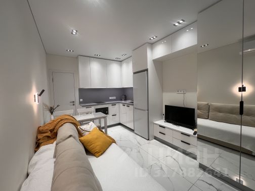 Очень просторная и светлая квартира. Одна комната-студия ( совмещена с кухней) , вторая комната спальня . Стены декоративная штукатурка ; натяжные потолки; пол ламинат, кафель; горячая вода круглосуточно ( автономное отопление) ; панорамные окна на всю ширину стен (4м) и от потолка до пола ; кухня-студия 17 кв.м , комната 18 кв.м, сан.узел совмещен - 8 кв.м , балкон застеклен -- 6 кв.м , коридор 7 кв.м.